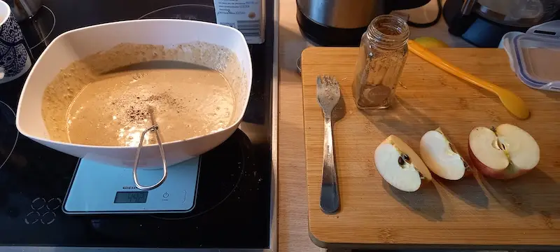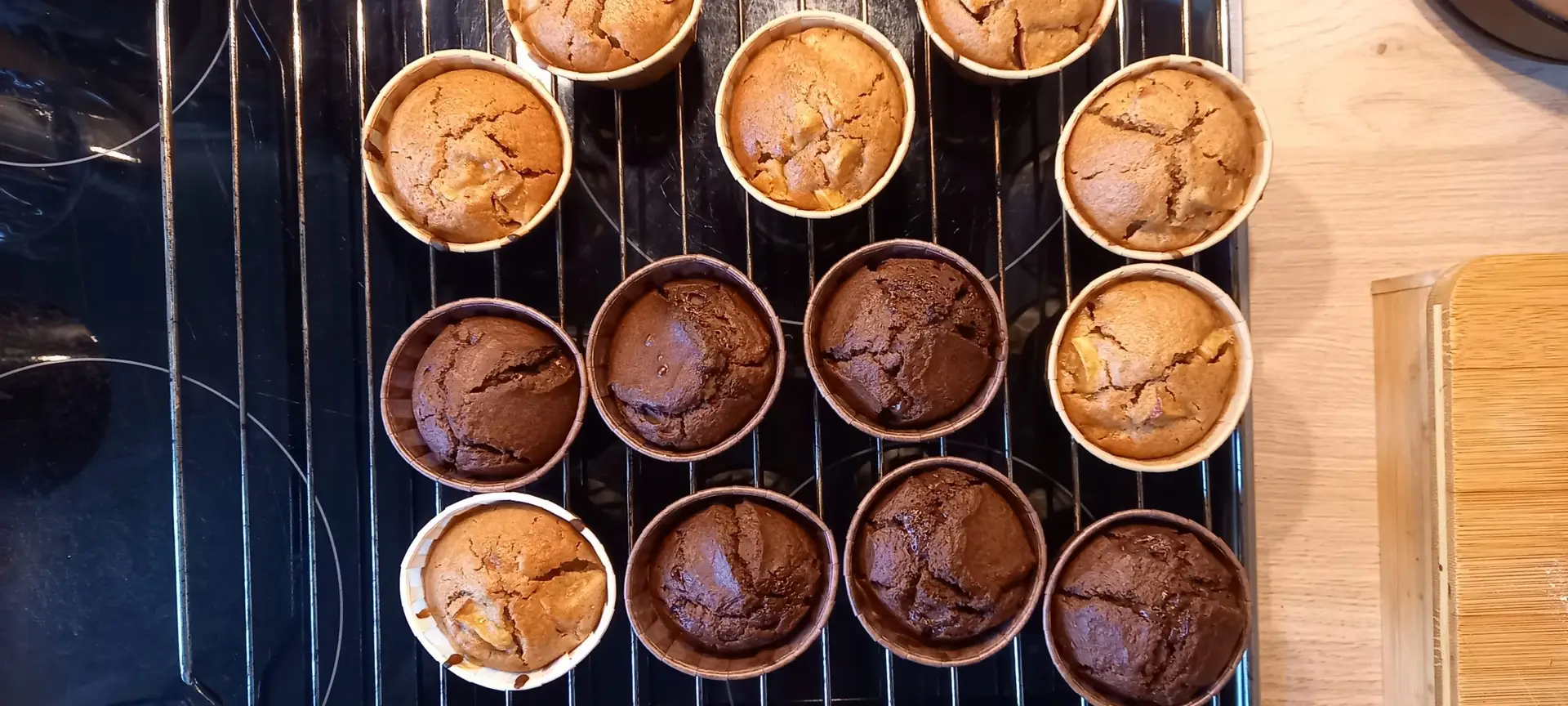 8:17 Uhr Erstmal geht es aber an den Herd. Heute treffe ich ein paar Freund:innen und möchte noch für alle Apfel-Zimt-Muffins backen. Vielleicht mach ich auch noch Schoko dazu?