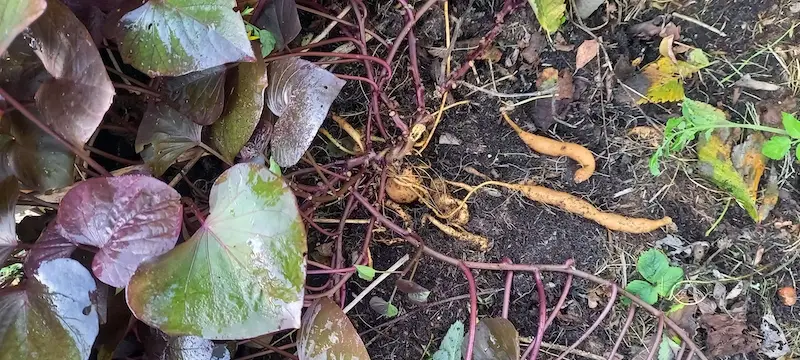 9:22 Uhr Nun aber schnell zu den Süßkartoffeln. Hm, also die sahen letztes Jahr aber anders aus, richtig groß und schön. Aus denen hier können wir gerade mal drei Pommes machen…