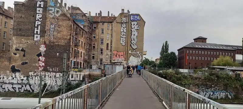 16:54 Uhr Bei meiner Verabredung passieren wir auf dem Weg zum Essen die Schönfließer Brücke und ich werde etwas nostalgisch: hier im Prenzlauer Berg hab ich lange gewohnt und die Brücke unzählige Male überquert, auf dem Weg zum Supermarkt oder nachts nach dem Club, zu allen möglichen Gelegenheiten. Ich mag diesen Ort.