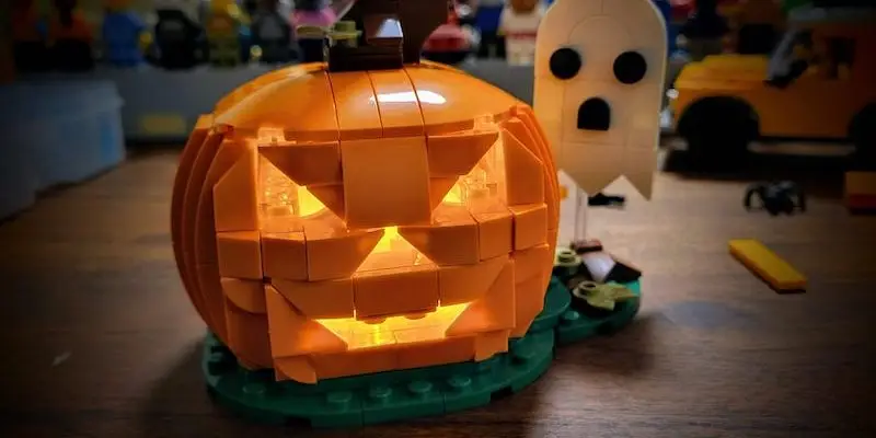 20:42 Uhr Wieder zuhause. Guckt mal, den coolen LEGO-Halloweenkürbis habe ich gestern zusammengebaut. Wenn man auf den Strunk oben drückt, dann leuchtet er. Toll, oder? Mit einem gruseligen huaaaaaah entlasse ich euch also in den Abend. Bis bald mal wieder!
